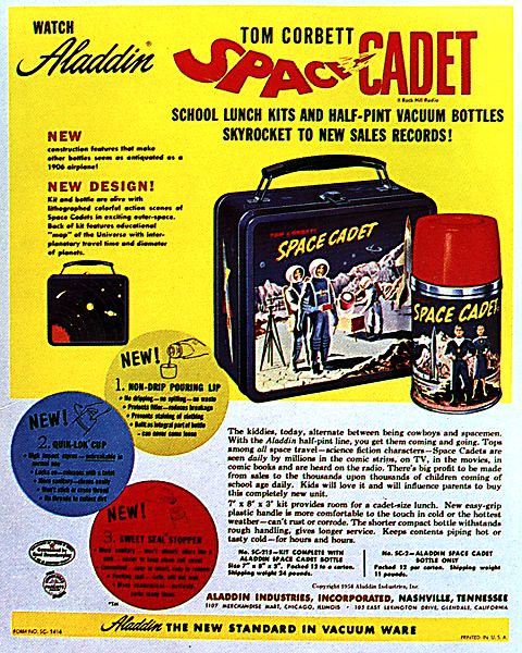 The kiddies today alternate between being cowboys and spacemen. With the Aladdin half-pint line you get them coming and going. Tops among all space travel—science fiction characters—Space Cadets are seen daily by millions in the comic strips, on TV, in the movies, in comic books, and are heard on the radio. There's big profit to be made from sales to the thousands upon thousands of children coming of school age daily. Kids will love it and will influence parents to buy this completely new unit.